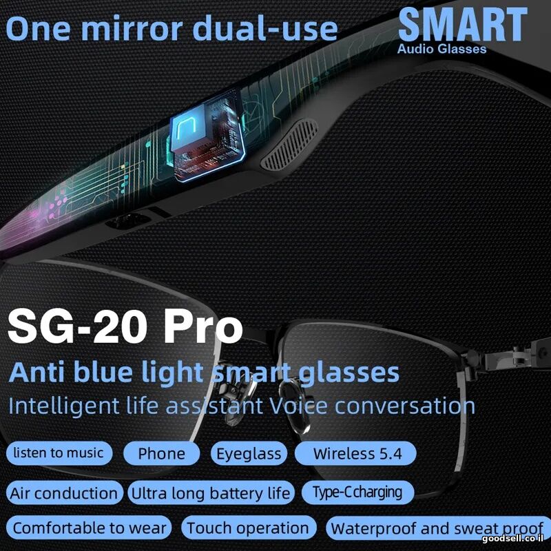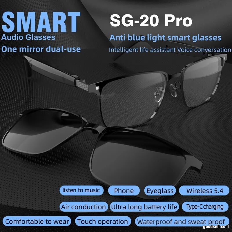 Sg20 pro משקפי שמש חכמים pro עבור BT אנטי-סגול אנטי-כחול שקוטב עדשות הובילו משקפיים חכמים להתאמה אישית